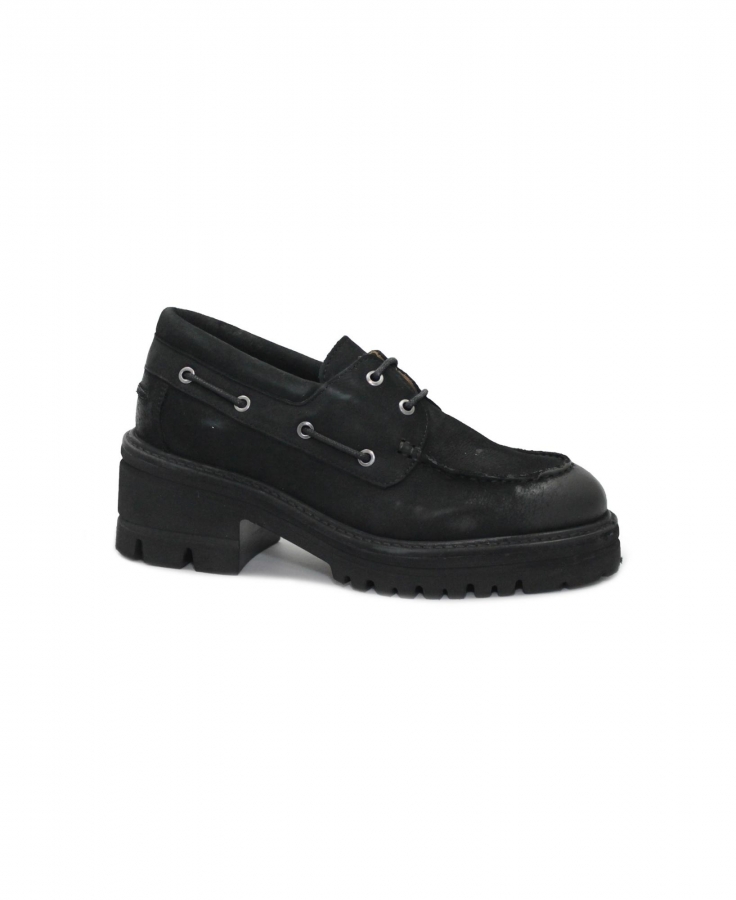 CAFè NOIR GA1034 nero scarpe donna derby pelle lacci carrarmato tacco