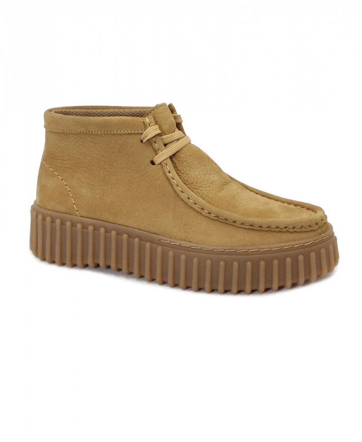 CLARKS TORHILL MOSS light tan nubuck cuoio scarpe mid donna pelle lacci