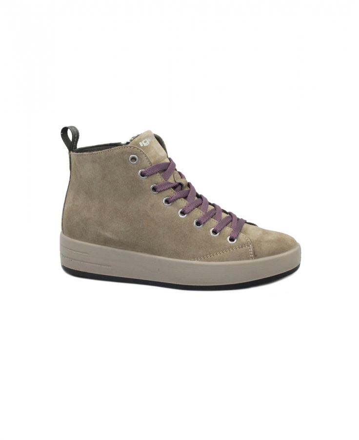 IGI&CO 8668222 cognac marrone scarpe donna sneakers alte lacci zip camoscio zeppa