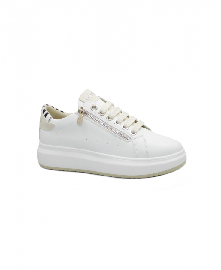KEYS 11800 white beige bianco scarpe sneakers donna lacci zip platform