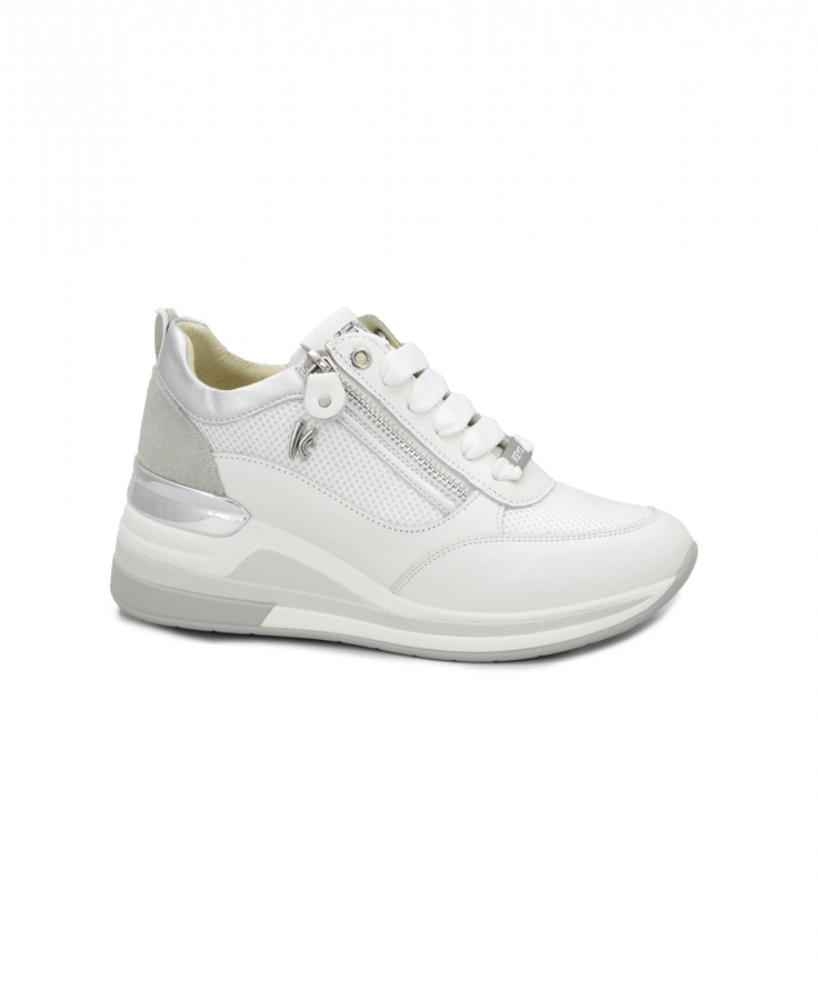 KEYS 11810 white silver scarpe sneakers donna lacci zeppa zip