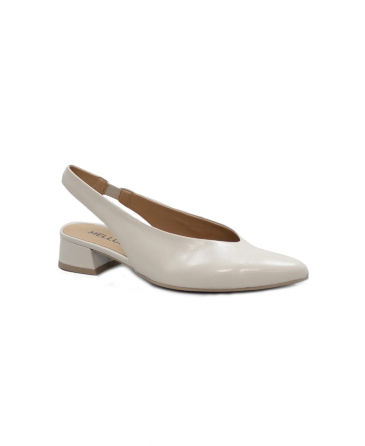 MELLUSO D156 milk panna lucido scarpe donna sandali slingback tacco basso punta