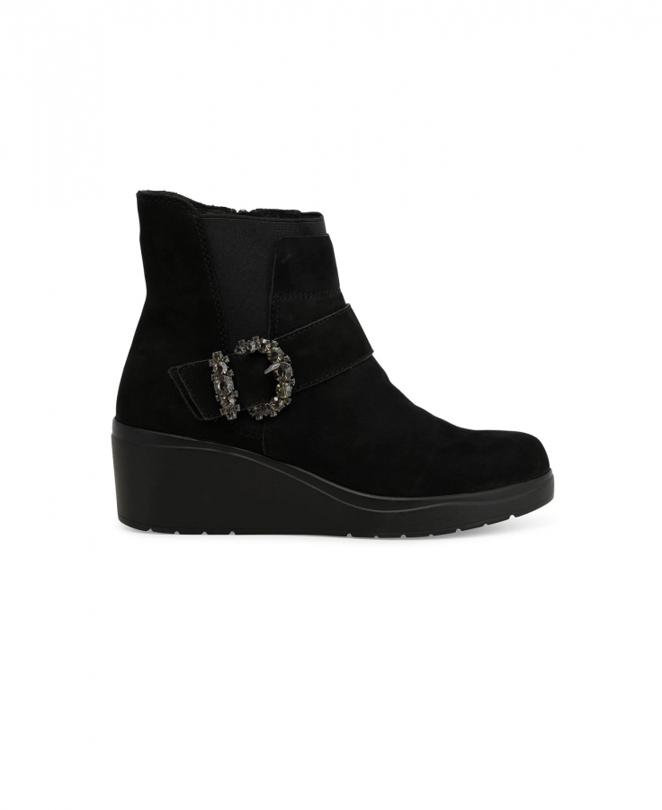 MELLUSO K53019 250870 nero scarpe donna stivaletti tronchetti zeppa zip camoscio strass