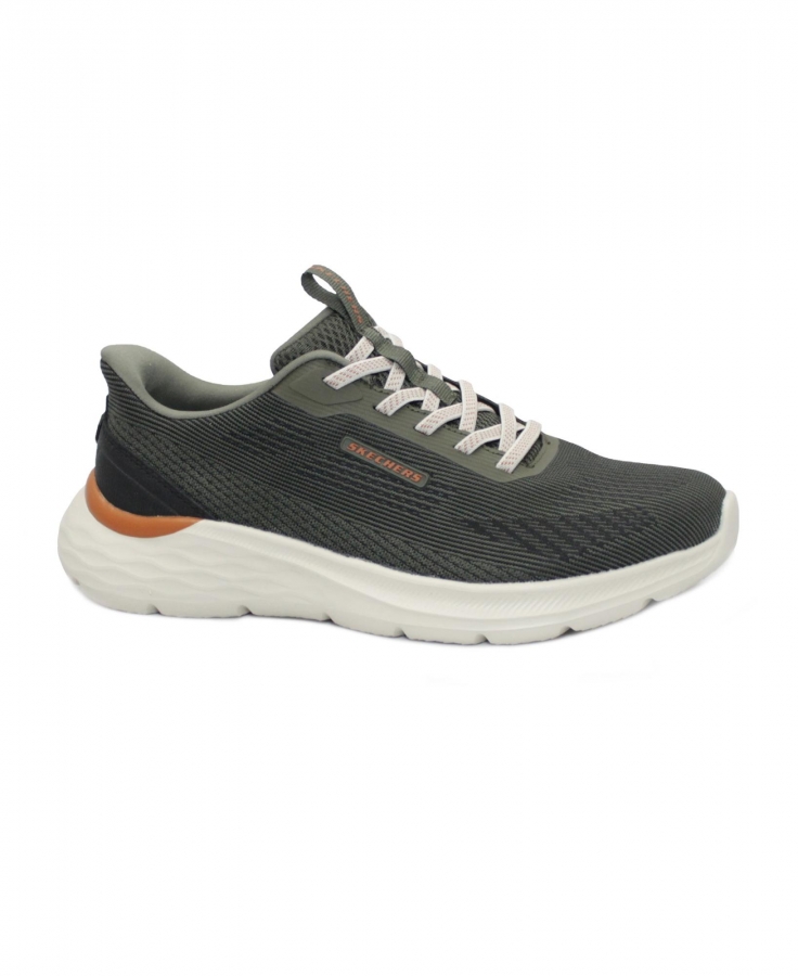 SKECHERS 211369 GARNER olive verde scarpe uomo sneakers lacci tessuto vegan slip-ins