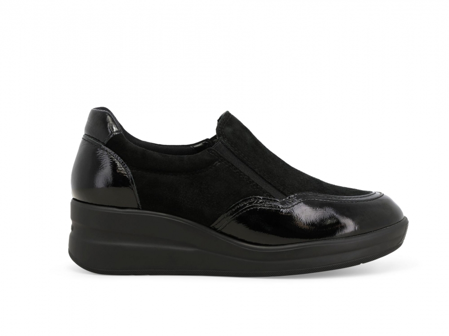 Sneakers donna in camoscio e vernice nero r25641z