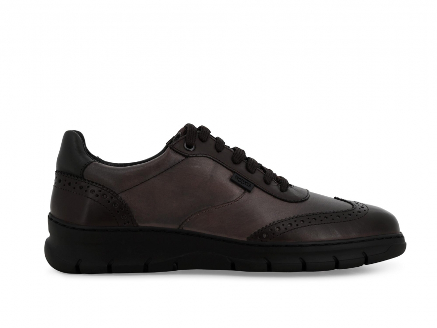 Sneakers uomo allacciata in morbida pelle marrone u55704