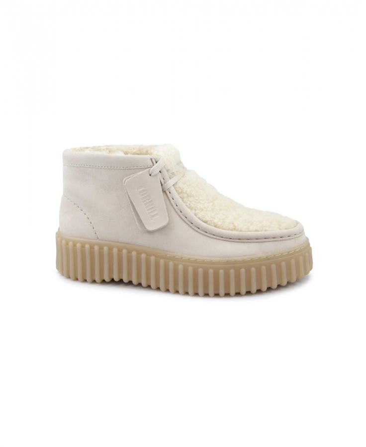 CLARKS TORHILL MOSS sand warmlined beige scarpe mid donna camoscio pelo lacci