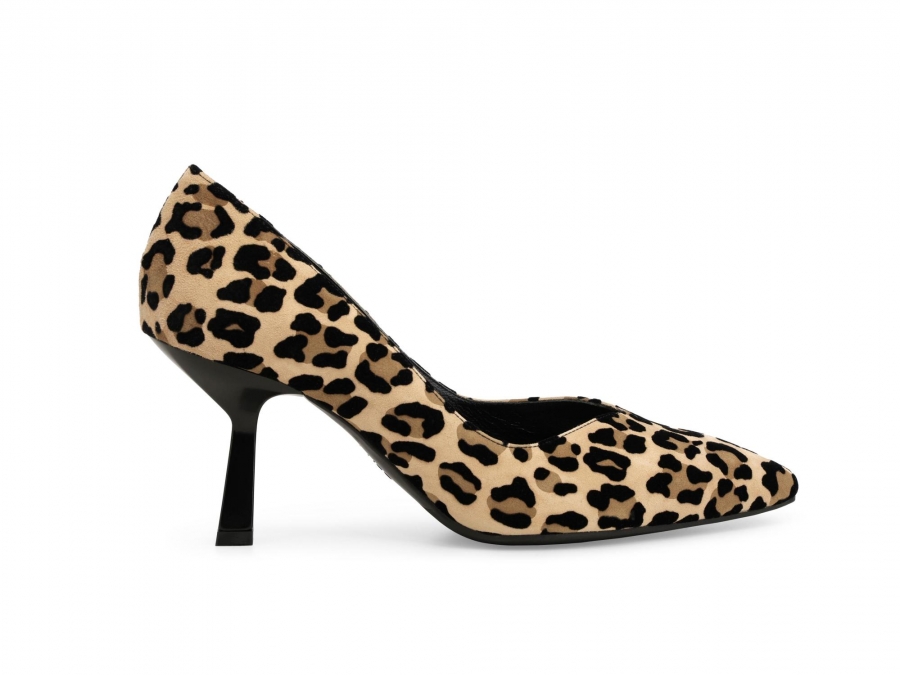 Décolleté donna in camoscio flock elegante e comodo leopardo beige d5203