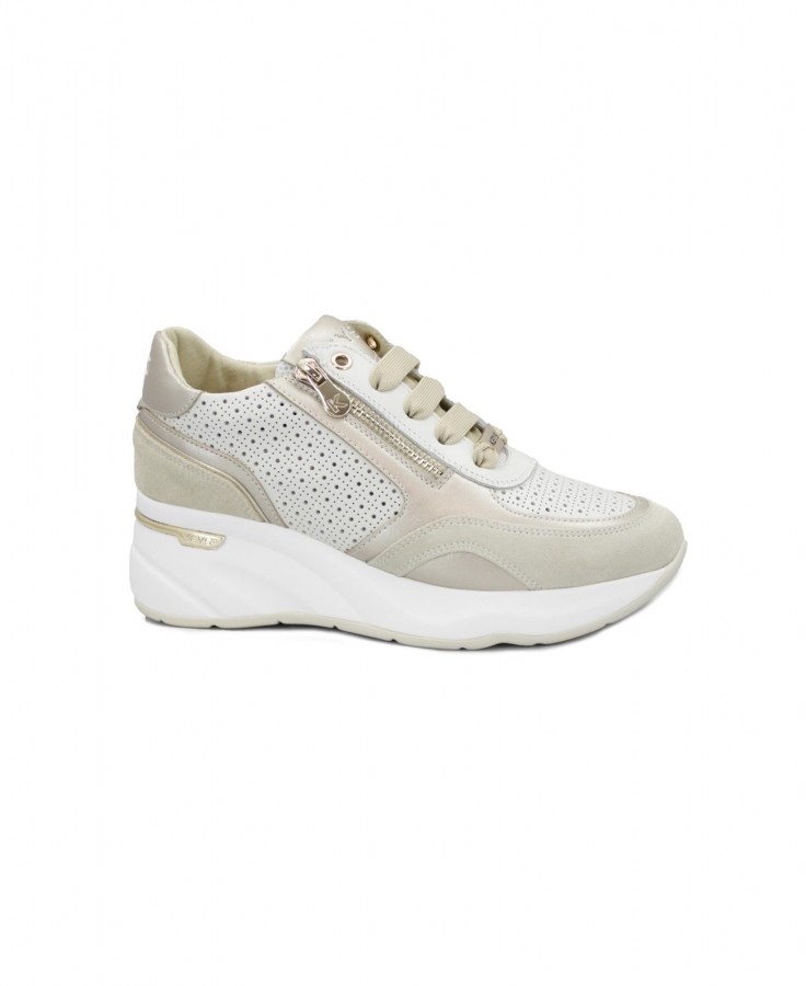 KEYS 11903 beige platino scarpe sneakers donna lacci zeppa zip