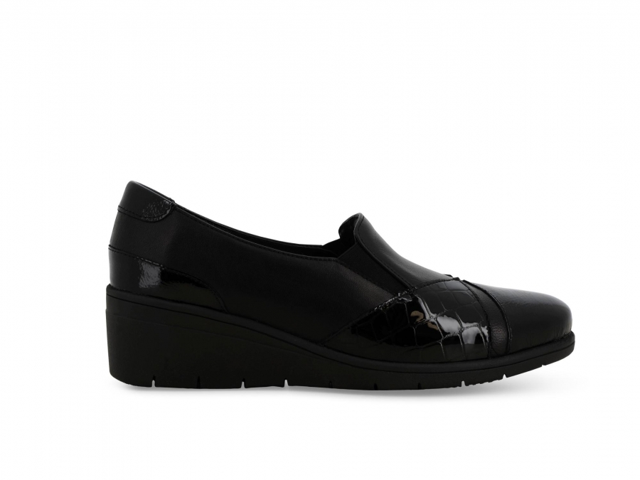 Mocassino donna comodo in morbida pelle e vernice nero k91617z