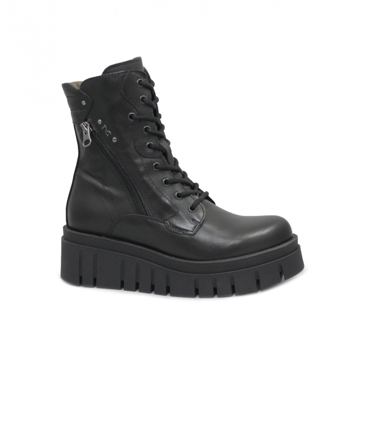 NERO GIARDINI 14763 nero stivaletti donna anfibio lacci due zip fibbia