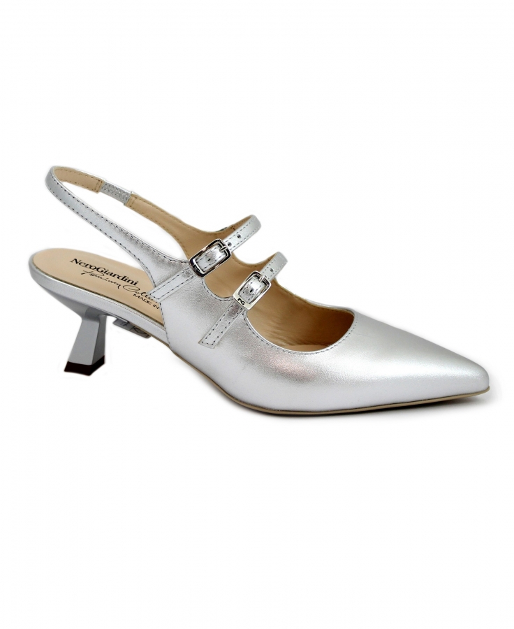 NERO GIARDINI 12253 argento scarpe donna decolletè tacco sling back cinturino punta