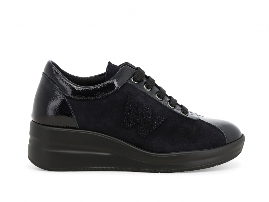 Sneakers donna in vernice e camoscio blu notte r25642z