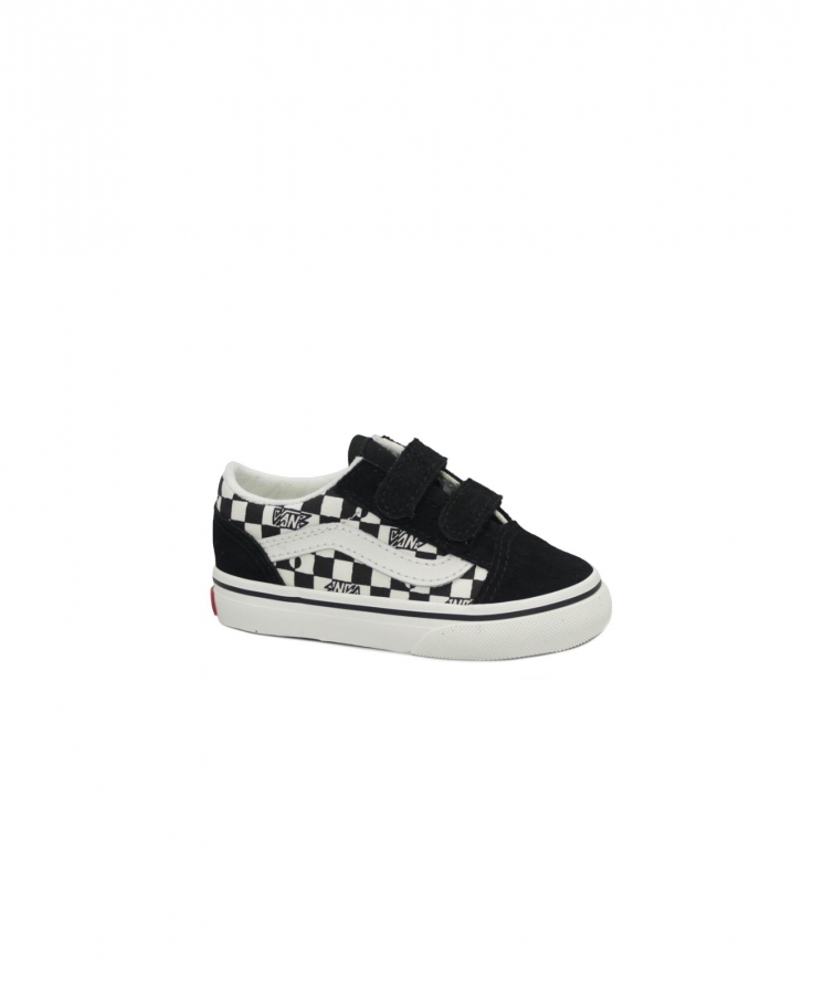 VANS OLD SKOOL V CRWBLA1 GEO CHECK black nero bambino sneakers strappi scacchi